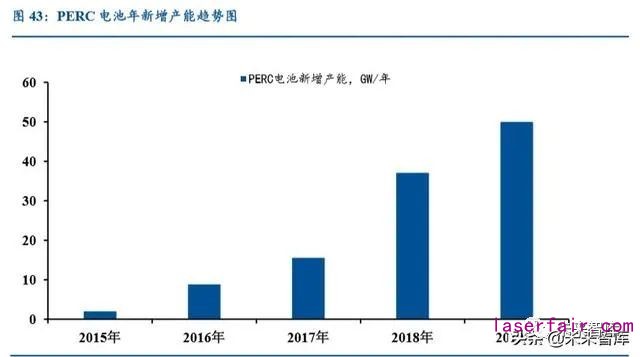 在早期發(fā)展階段,設(shè)備市場(chǎng)規(guī)模極小。2014 年以前,由于 PERC 電池尚處于早期的發(fā)展階 段,下游電池廠商仍以試驗(yàn)產(chǎn)能為主,新增產(chǎn)能規(guī)模有限,因此,PERC 相關(guān)的生產(chǎn)設(shè)備的市場(chǎng) 空間極小。