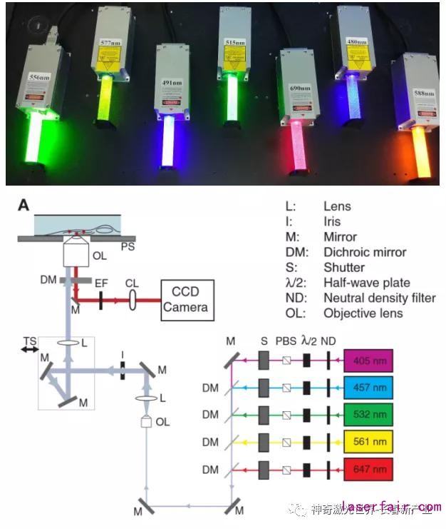 常用波長:488nm,532nm,635nm,770-840nm可調諧激光器等。