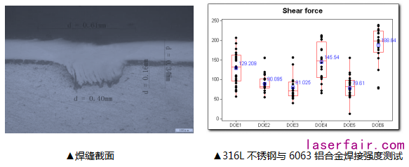 激光焊接薄板異種材料時(shí),極易出現(xiàn)虛焊、裂紋、連接強(qiáng)度低等問題,這是由于兩者的物理性能差異大,互溶度低,且極易生成脆性化合物,這些化合物使焊接頭的力學(xué)性能大大降低。選用高光束質(zhì)量的納秒級(jí)激光通過高速掃描方式,精準(zhǔn)的控制熱輸入抑制金屬間化合物的形成,實(shí)現(xiàn)異種金屬薄板搭接,改善焊縫成形及力學(xué)性能。