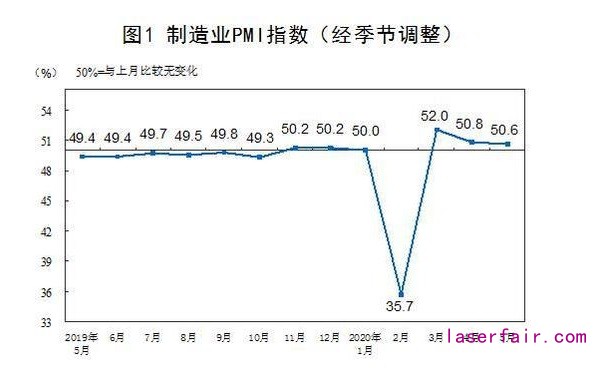 5月31日,國(guó)家統(tǒng)計(jì)局與中國(guó)物流與采購聯(lián)合會(huì)聯(lián)合發(fā)布的5月份中國(guó)制造業(yè)采購經(jīng)理指數(shù)(PMI)為50.6%,較上月小幅下降0.2個(gè)百分點(diǎn),保持在50%榮枯線以上。