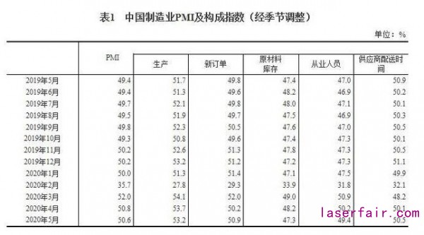 5月份中國(guó)制造業(yè)采購經(jīng)理指數(shù)(PMI)為50.6%,較上月小幅下降0.2個(gè)百分點(diǎn),保持在50%以上,經(jīng)濟(jì)保持恢復(fù)性增長(zhǎng)勢(shì)頭。從分項(xiàng)指數(shù)來看,市場(chǎng)需求保持回升,企業(yè)復(fù)產(chǎn)保持穩(wěn)定,勢(shì)頭稍有放緩,就業(yè)活動(dòng)也相對(duì)穩(wěn)定。新動(dòng)能保持較快恢復(fù)勢(shì)頭,大型企業(yè)繼續(xù)保持較好支撐作用,企業(yè)對(duì)后市預(yù)期趨升。但市場(chǎng)需求恢復(fù)相對(duì)較慢,企業(yè)成本又有所增加。