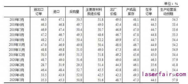 值得注意的是,本月生產(chǎn)指數(shù)較上月下降0.5個(gè)百分點(diǎn),不過仍保持在53.2%的高位,這表明企業(yè)生產(chǎn)在前期較快恢復(fù)的情況下,本月回升勢(shì)頭稍有放緩。本月從業(yè)人員指數(shù)為49.4%,較上月下降0.8個(gè)百分點(diǎn)。本月新出口訂單指數(shù)雖較上月上升了1.8個(gè)百分點(diǎn),但仍處于35.3%的歷史地位,低于去年同期11.2個(gè)百分點(diǎn)。