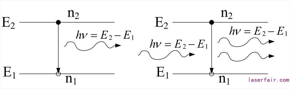 自發(fā)輻射(左)和受激輻射(右)