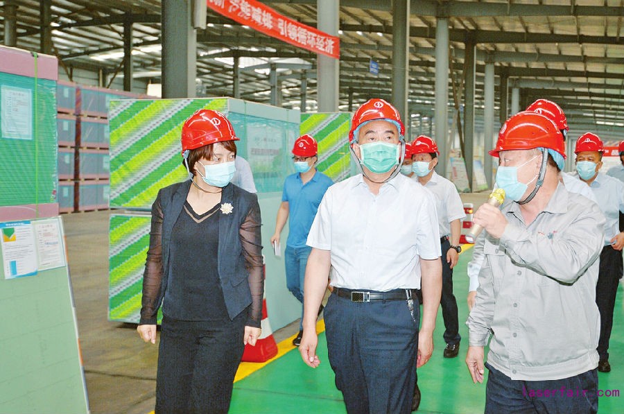 7月2日,省長(zhǎng)林武在山西建筑產(chǎn)業(yè)現(xiàn)代化霍州園區(qū)調(diào)研,實(shí)地察看兆光電廠紙面石膏板、粉煤灰新型綠色建材等項(xiàng)目,詳細(xì)詢(xún)問(wèn)產(chǎn)品用途、性能、市場(chǎng)需求等情況。(李兆民攝)