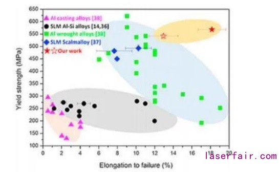 根據(jù)3D科學(xué)谷的市場(chǎng)觀察,南京航空航天大學(xué)幾年前開(kāi)發(fā)出基于SLM成形的鋁基納米復(fù)合材料,用于激光增材技術(shù)領(lǐng)域,有效的解決鋁基納米復(fù)合材料在激光增材過(guò)程中工藝性能與力學(xué)性能不匹配、增強(qiáng)顆粒分布不均勻以及陶瓷相與基材相之間潤(rùn)濕性較差的問(wèn)題,使得所獲得的產(chǎn)品具備良好的界面結(jié)合以及優(yōu)異的力學(xué)性能。