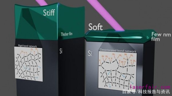 例如,在最近的研究中,研究人員探究了兩種由碳化硅制成的薄膜的相對強度:一種約46納米厚,另一種只有5納米厚。該團隊的紫外線激光器帶來了令人驚訝的結果。較薄的薄膜比較厚的對應物軟了約10倍,或者說剛度更低,這是研究人員沒有想到的。