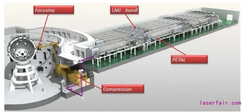 LMJ裝置于法國南部波爾多市的阿基坦科技研究中心破土動(dòng)工。2008年,開始試運(yùn)行。之后法國又為LMJ裝置增加了PETAL (ICF PETawatt Aquitaine Laser), 是一路短脈沖(500fs~10ps), 超高功率(1~7PW),高能 (1~3.5kJ) 光束。