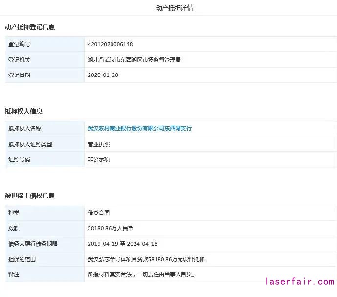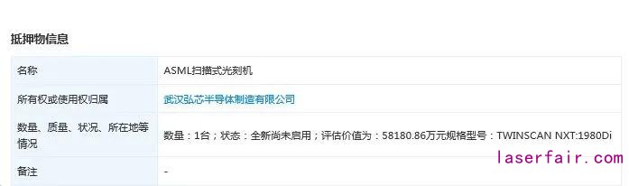 據(jù)集微網(wǎng)報(bào)道,這臺(tái)的光刻機(jī)剛剛?cè)雸?chǎng)就被用于抵押貸款。通過天眼查發(fā)現(xiàn),今年1月20日(也就是在武漢封城之前),武漢弘芯就將這臺(tái)ASML光刻機(jī)抵押給了武漢農(nóng)村商業(yè)銀行股份有限公司東西湖支行,貸款了58180.86萬(wàn)元。根據(jù)抵押資料顯示,抵押的這臺(tái)ASML光刻機(jī)型號(hào)為TWINSCAN NXT:1980Di,狀態(tài)為“全新尚未啟用”,評(píng)估價(jià)值為58180.86萬(wàn)元。