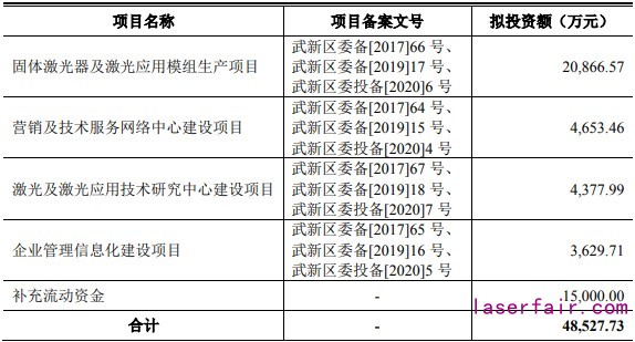 英諾激光本次擬募集資金4.85億元,其中1.5億擬補(bǔ)充流動(dòng)資金。