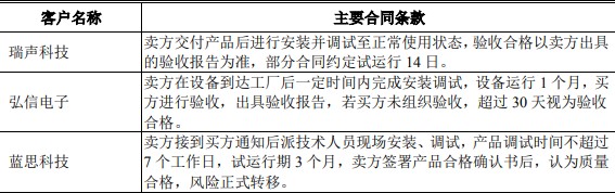 根據(jù)約定,公司與上述 3 家客戶驗(yàn)收時(shí)長(zhǎng)為 1-3 個(gè)月。
