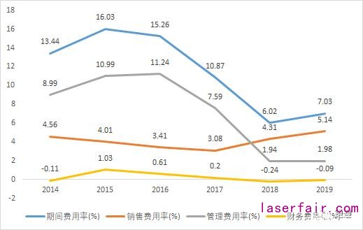 分產(chǎn)品來看,2019年脈沖光纖激光器實(shí)現(xiàn)營(yíng)收同比增長(zhǎng)44.02%至3.21億元,占比15.96%,毛利率減少17.05pp至15.73%;連續(xù)光纖激光器實(shí)現(xiàn)營(yíng)收同比增長(zhǎng)32.47%至14.77億元,占比73.50%,毛利率減少17.13pp至32.33%;超快激光器實(shí)現(xiàn)營(yíng)收2446.52萬元,占比1.22%;技術(shù)開發(fā)服務(wù)實(shí)現(xiàn)營(yíng)收同比增長(zhǎng)51.21%至1.17億元,占比5.83%;其他實(shí)現(xiàn)營(yíng)收7040.82萬元,占比3.50%。