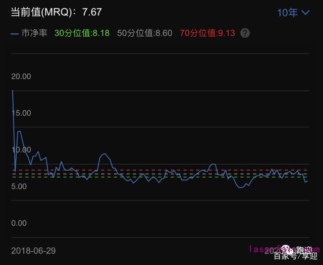 PB 7.69,位于上市以來30分位值下降。