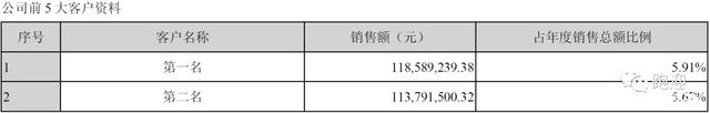 2019年前五大客戶實(shí)現(xiàn)營(yíng)收4.23億元,占比21.05%,其中第一大客戶實(shí)現(xiàn)營(yíng)收1.19億元,占比5.91%。