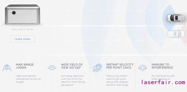 除了大大降低了整個(gè)設(shè)備的尺寸和功率,該技術(shù)同時(shí)實(shí)現(xiàn)了300多米的低反射物體的全范圍探測(cè)性能,以及測(cè)量每個(gè)點(diǎn)的瞬時(shí)速度能力。