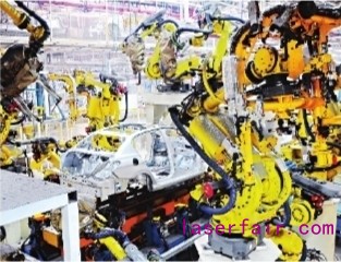 東風(fēng)本田焊接工廠,智能機(jī)器人焊接車身。