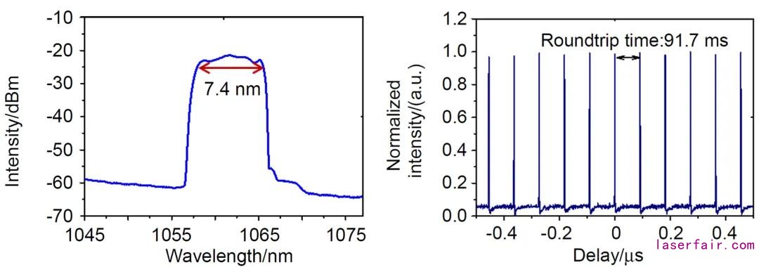 圖2 腔內(nèi)高階模式振蕩輸出的鎖模光譜和脈沖序列