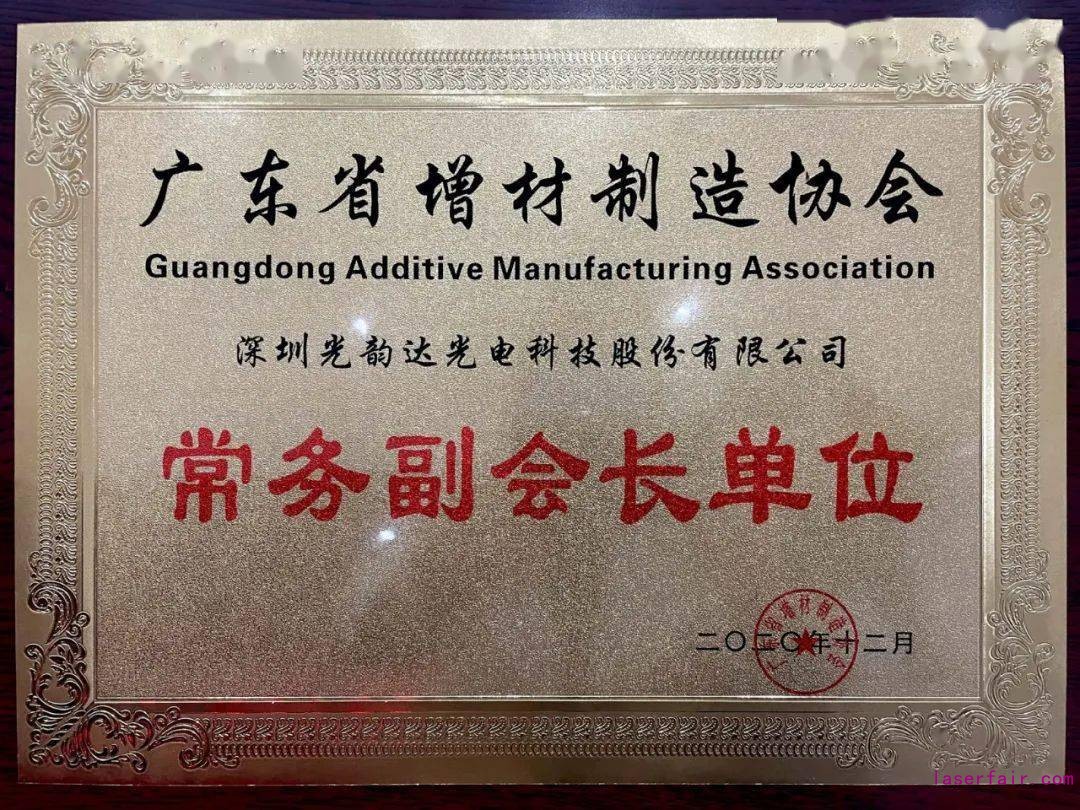廣東省增材制造協(xié)會(huì)會(huì)長、華南理工大學(xué)教授楊永強(qiáng),廣東省增材制造協(xié)會(huì)秘書長陳孝超為光韻達(dá)授牌廣東省增材制造協(xié)會(huì)常務(wù)副會(huì)長單位。