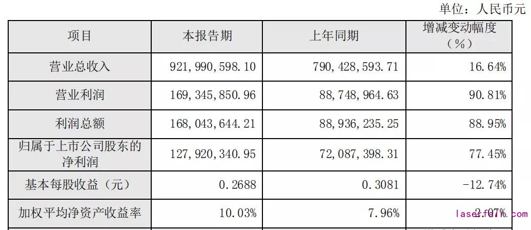 近日,深圳光韻達(dá)光電科技股份有限公司(以下簡(jiǎn)稱“光韻達(dá)”)發(fā)布2020年度業(yè)績(jī)快報(bào)稱,2020年?duì)I業(yè)總收入約9.2億元,同比增長(zhǎng)16.64%;歸屬于上市公司股東的凈利潤(rùn)約1.3億元,同比增長(zhǎng)77.45%。