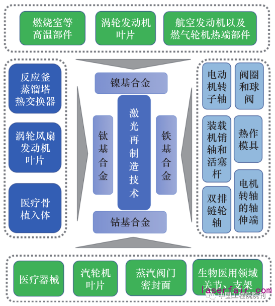 圖2 面向不同工業(yè)領(lǐng)域的激光再制造技術(shù)