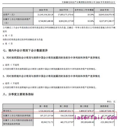 整體來看,這份答卷看似令人滿意。然而,分季度來看,大族激光在第四季度營收環(huán)比出現(xiàn)下滑,并且凈利潤體現(xiàn)為虧損。報告顯示,大族激光2020年第四季度,營收為30.84億元,明顯少于第三季度的36.99億元;實(shí)現(xiàn)歸屬于上市公司股東的凈利潤為-0.41億元。
