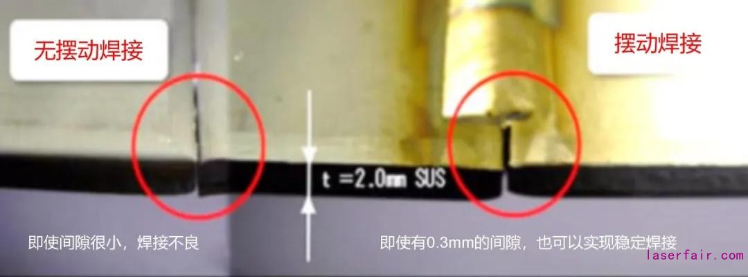 目前,聯(lián)贏激光在輕型手持式擺動焊接頭方面也取得了很好的進(jìn)展,如上圖所示,即使需要焊接的工件有0.3mm的間隙,也能實現(xiàn)穩(wěn)定的焊接。
