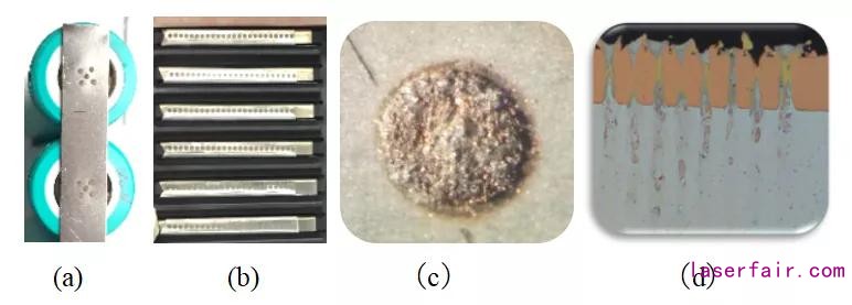 用超聲波將8~10μm厚的幾十層銅箔/鋁箔接合后,在焊接到厚的電極上,從背面用激光復(fù)合焊接,可以實現(xiàn)無飛濺,高強(qiáng)度,低電阻的部件連接。
