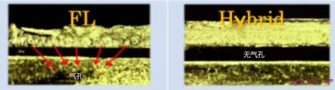為了滿足電池的高質(zhì)量、高接合強(qiáng)度和低接合電阻,原理上能夠避免制造缺陷的技術(shù)是必不可少的。深熔焊保證有效的焊接熔深,熱傳導(dǎo)焊的預(yù)熱作用,能夠維持匙孔的開口狀態(tài),保證順暢排出內(nèi)部氣體,而不產(chǎn)生焊接飛濺。與此同時,也能讓熔池緩慢冷卻,在氣體排出之前,液態(tài)金屬不凝固,防止內(nèi)部氣孔的產(chǎn)生。