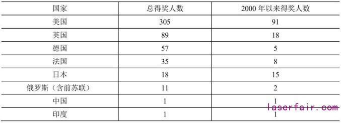 對比指標(biāo)之一是諾貝爾獎基礎(chǔ)科學(xué)(物理學(xué)、化學(xué)、生理學(xué)或醫(yī)學(xué))得主數(shù)量(圖表1),美國、英國、德國、法國及日本等主要發(fā)達(dá)國家優(yōu)勢相對突出。