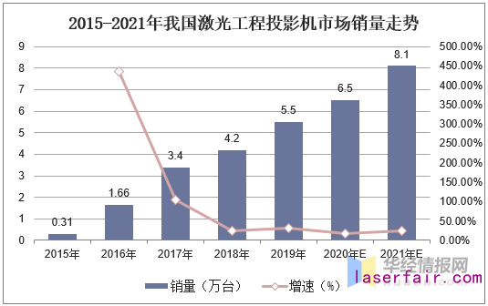 在激光工程投影機市場,據(jù)統(tǒng)計,截至2019年我國激光工程投影機市場銷量為5.5萬臺,同比增長30.95%,預計2021年我國激光工程投影機市場銷量為8.1萬臺。