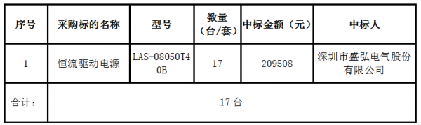 創(chuàng)鑫激光超高功率光纖激光器研發(fā)及產(chǎn)業(yè)化項目設(shè)備中標公告文件編號:I(CG)字第210419001號1、項目名稱:超高功率光纖激光器研發(fā)及產(chǎn)業(yè)化項目2、招標單位:深圳市創(chuàng)鑫激光...
