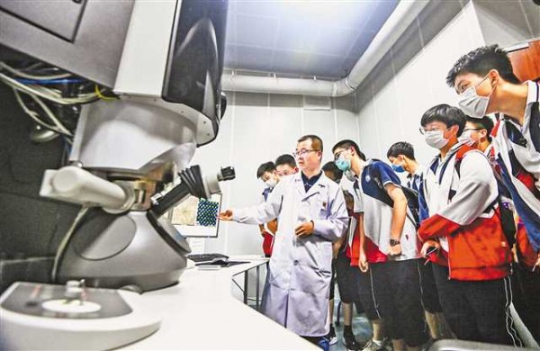 六月一日,重慶大學(xué)電子顯微鏡中心,科研人員正在向中學(xué)生介紹像差校正透射電鏡工作原理和功能。該中心為建設(shè)超瞬態(tài)實驗裝置打下良好基礎(chǔ)。首席記者 龍帆 攝\視覺重慶 ...