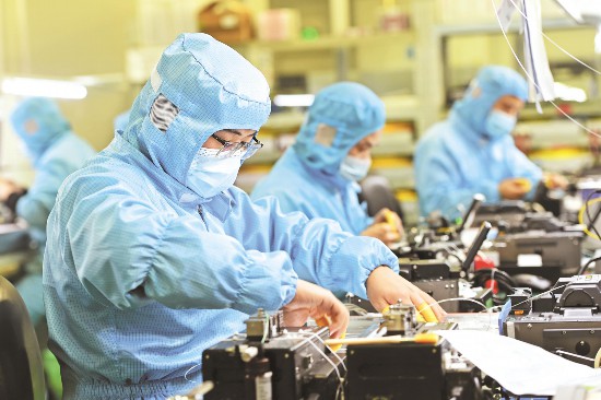 武漢銳科光纖激光技術(shù)股份有限公司脈沖光學(xué)車間,員工正在加緊生產(chǎn)光纖激光器光學(xué)模塊。 (湖北日報全媒記者 李溪 攝)