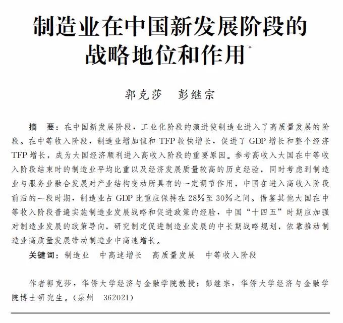 制造業(yè)在中國新發(fā)展階段的戰(zhàn)略地位和作用