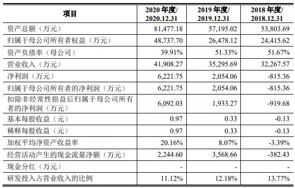 2018-2020年,德龍激光實現(xiàn)營業(yè)收入分別為3.23億元、3.53億元、4.19億元,對應(yīng)的凈利潤分別為-815.36萬元、2054.06萬元、6221.75萬元。