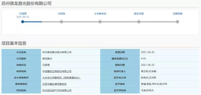 6月25日,上交所正式受理了蘇州德龍激光股份有限公司(以下簡稱:德龍激光)科創(chuàng)板上市申請。