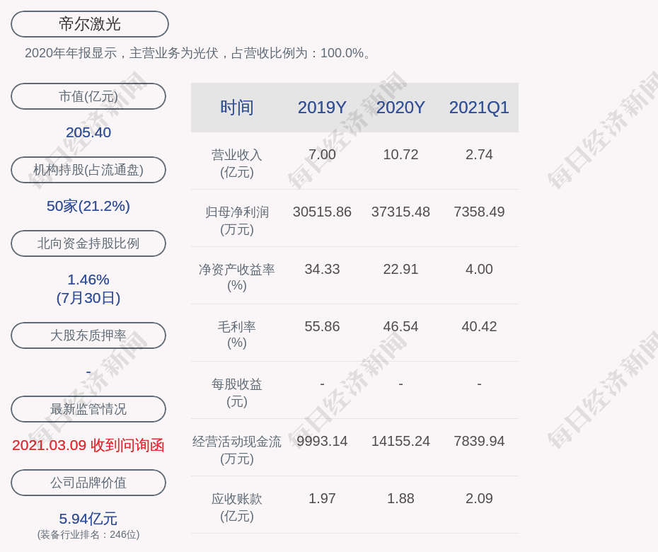 2020年年報(bào)顯示,帝爾激光的主營業(yè)務(wù)為光伏,占營收比例為:100.0%。