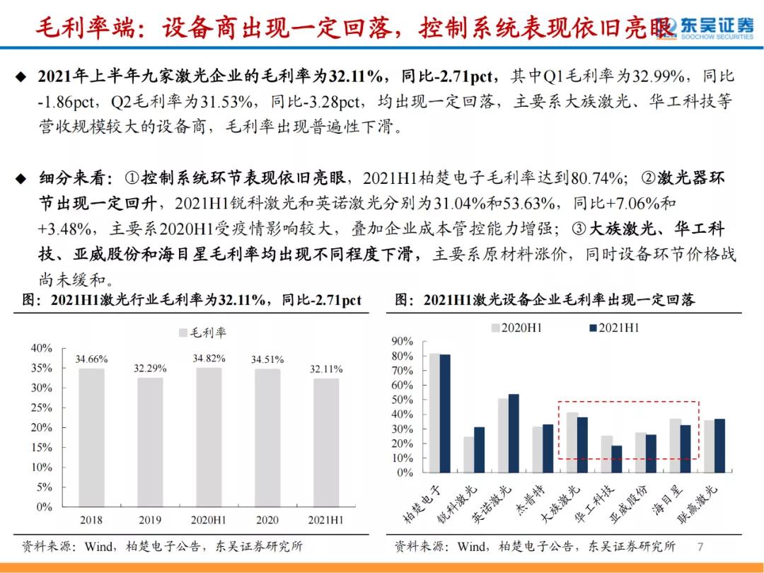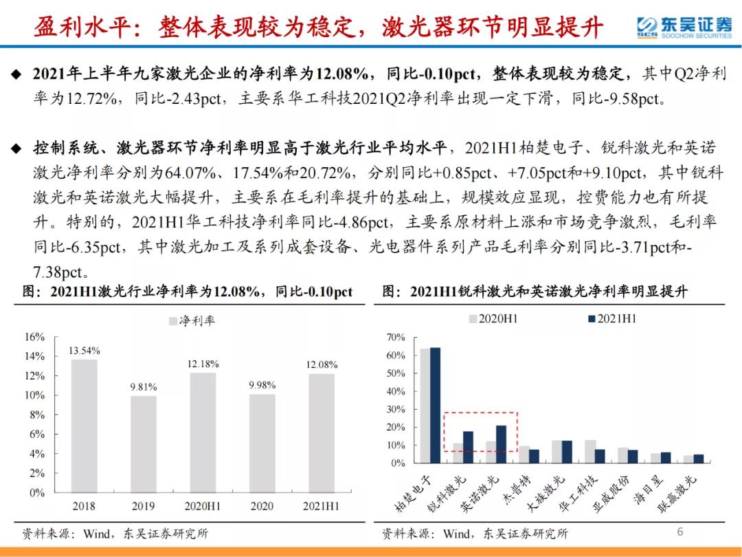 整體來(lái)看,2021H1九家激光企業(yè)合計(jì)實(shí)現(xiàn)營(yíng)收170.90億元,同比+57.29%,合計(jì)實(shí)現(xiàn)歸母凈利潤(rùn)20.33億元,同比+53.96%,業(yè)績(jī)保持高速增長(zhǎng);綜合凈利率為12.08%,同比-0.10pct...