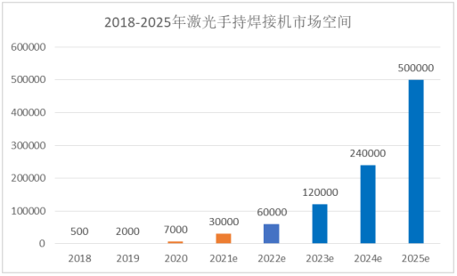 丁建武:從去年近7,000臺的出貨量到今年近30,000臺的出貨量,基本實(shí)現(xiàn)了300%的增長,屬于激光手持焊應(yīng)用全面爆發(fā)的第一年。市場上目前已經(jīng)有近500家激光手持焊的生產(chǎn)廠商,已經(jīng)接近激光切割設(shè)備集成商的一半,呈現(xiàn)爆發(fā)式的發(fā)展速度。由于激光手持焊上手快(5分鐘),無需專業(yè)焊工,焊接速度快(為傳統(tǒng)焊接速度的3-5倍),基本上所有鈑金廠及傳統(tǒng)焊接領(lǐng)域都可以用到,對于傳統(tǒng)的焊接呈現(xiàn)出顛覆性的替代,就像10年前激光切割替代沖床一樣,從最開始少量替代到絕大部分替代,目前激光切割機(jī)存量已經(jīng)超過20萬臺,此外,焊接應(yīng)用的整體市場一直遠(yuǎn)大于切割應(yīng)用,從這個角度看,激光手持焊未來的滲透空間巨大。