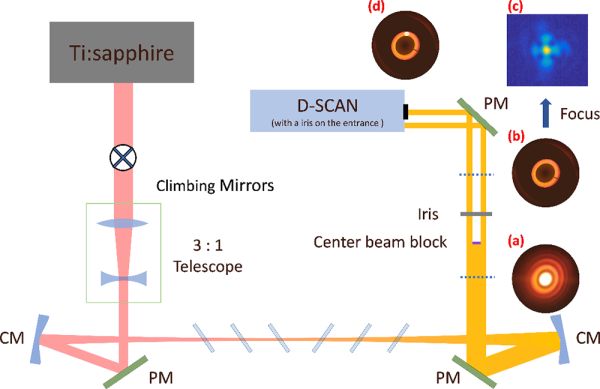 中國(guó)科學(xué)院物理研究所/北京凝聚態(tài)物理國(guó)家研究中心光物理重點(diǎn)實(shí)驗(yàn)室研究員魏志義研究組長(zhǎng)期致力于少周期激光脈沖產(chǎn)生的研究,最近該組博士研究生高亦談在副研究員趙昆、研究員魏志義等的指導(dǎo)下,基于研究組內(nèi)發(fā)展的薄片組光譜展寬技術(shù),利用飛秒鈦寶石放大激光電離產(chǎn)生的錐狀輻射效應(yīng),通過在空間上精確尋找到色散匹配最佳位置,并配合空間濾波,獲得了少周期飛秒自壓縮脈沖。實(shí)驗(yàn)中,科研人員所用鈦寶石激光器的中心波長(zhǎng)約800nm,脈寬小于40 fs。在該激光脈沖注入下,其產(chǎn)生了光譜覆蓋從650至900nm、脈寬短至8.8 fs的少周期脈沖,數(shù)值模擬的最短脈寬達(dá)5.0 fs。該工作展示出在800nm中心波長(zhǎng)附近能穩(wěn)定產(chǎn)生少周期自壓縮脈沖的方法,首次實(shí)現(xiàn)了在固體材料自壓縮中對(duì)電離的調(diào)控,其在高功率少周期脈沖產(chǎn)生以及后續(xù)的阿秒脈沖產(chǎn)生方面存在潛力。此外,由于通過空間濾波后的自壓縮脈沖光斑為環(huán)形分布,而環(huán)形光斑在高通量高次諧波的產(chǎn)生過程中被證明有獨(dú)特優(yōu)勢(shì),因此可為后續(xù)極紫外激光的產(chǎn)生研究提供穩(wěn)定可靠的光源。