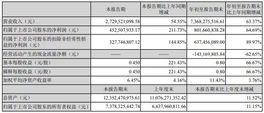 此外,華工科技還發(fā)布了第三季度財(cái)務(wù)報(bào)告。報(bào)告顯示,華工科技今年第三季度實(shí)現(xiàn)營(yíng)收27.3億元,同比增長(zhǎng)54.55%;凈利潤(rùn)4.53億元,同比增長(zhǎng)211.73%。今年前三季度營(yíng)收73.68億元,同比增長(zhǎng)63.37%;歸屬于上市公司股東的凈利潤(rùn)8.02億元,同比增長(zhǎng)64.69%。