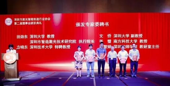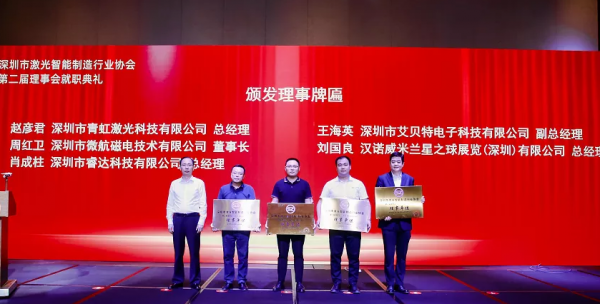 在就職典禮上,深圳市激光智能制造行業(yè)協(xié)會會長侯若洪發(fā)表講話,他說:“協(xié)會自2017年12月成立至今,認真做好各項工作。在加強協(xié)會自身建設,規(guī)范行業(yè)行為,推動產業(yè)發(fā)展,不斷提升協(xié)會在業(yè)界的影響力和知名度方面取得了可喜的成績,使深圳市激光產業(yè)得到健康﹑快速﹑有序的發(fā)展,行業(yè)更加規(guī)范、會員分享到更多的有效服務。”今年3月27日,協(xié)會按照章程規(guī)定進行了換屆。為落實職責,明確任務,進一步發(fā)揮協(xié)會的引領作用和理事的擔當精神,特舉行此次就職典禮儀式。深圳市政協(xié)經濟委賈興東主任(右1)為名譽會長頒發(fā)證書深圳市政協(xié)經濟委賈興東主任(左)為侯若洪會長頒發(fā)牌匾深圳市政協(xié)經濟委賈興東主任(左)為田勁東監(jiān)事長頒發(fā)證書深圳市政協(xié)經濟委賈興東主任(左)為邵火秘書長頒發(fā)牌匾中國工程院范滇元院士(中)、深圳市寶安區(qū)人大常委會趙俊平(左1)副主任為副會長單位頒牌