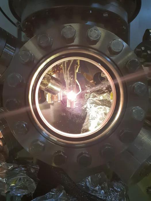 實(shí)驗(yàn)過(guò)程中保持樣品恒溫的發(fā)光燈絲。來(lái)源:HZB