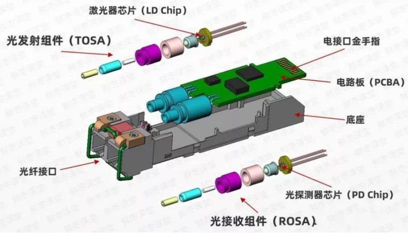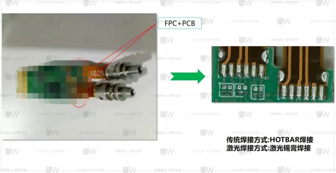 一個光模塊,通常由光發(fā)射器件(TOSA,含激光器)、光接收器件(ROSA,含光探測器)、功能電路和光(電)接口等部分組成。由于光模塊本身集成度高,且大量使用FPC軟板,因此激光焊接相較于傳統(tǒng)的烙鐵焊接、熱風(fēng)焊接、HotBar焊接、電子壓焊、波峰焊接等更適用于光通訊模塊的制造。