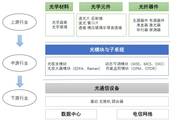 要了解激光焊接在光通信行業(yè)的應(yīng)用,先看一張圖,直觀的了解一下光通信行業(yè)的一個上下游產(chǎn)業(yè)鏈情況。
