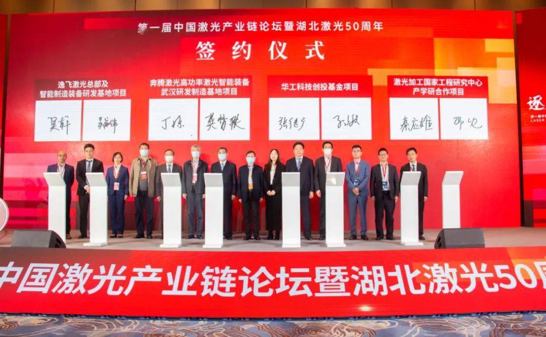 現(xiàn)場,逸飛激光總部及智能制造裝備研發(fā)基地、奔騰激光高功率激光智能裝備武漢研發(fā)制造基地、華工科技創(chuàng)投基金項目、激光加工國家工程研究中心產(chǎn)學(xué)研合作項目等簽約。