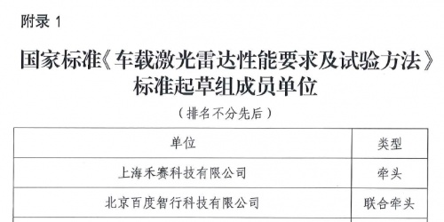 首個(gè)車載激光雷達(dá)國(guó)家標(biāo)準(zhǔn)開始起草 禾賽科技、百度等企業(yè)牽頭