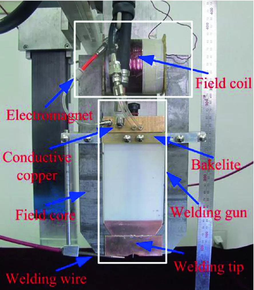 采用雙磁極以防止側(cè)壁熔合不足,并提高厚部件焊接的效率和質(zhì)量。電弧磁振蕩導(dǎo)致流經(jīng)兩側(cè)壁的電弧電壓和焊接電流發(fā)生變化,從而導(dǎo)致電弧熱量重新分布。磁場(chǎng)使焊接電弧擺動(dòng),將更多的熱量帶入側(cè)壁,確保側(cè)壁熔透。結(jié)果表明,溝槽側(cè)壁完全熔化,形成了良好的接頭。