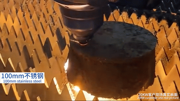 現(xiàn)在:采用宏山激光總線“三位一體”配置,20KW就能實(shí)現(xiàn)100mm超厚不銹鋼切割!