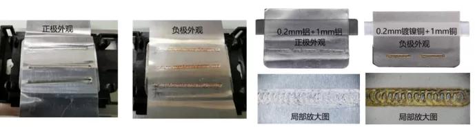 采用杰普特單模CW-2000W、多模CW-6000W、輸出光束可調(diào)(AOB)連續(xù)光纖激光器系列產(chǎn)品可實現(xiàn)不同厚度的銅鋁極耳焊接,焊點/焊縫形態(tài)穩(wěn)定、無氣孔、爆點等缺陷,凸起高度≤0.3mm、拉力≥300N、殘留≥80%、阻值≤0.3Ω。