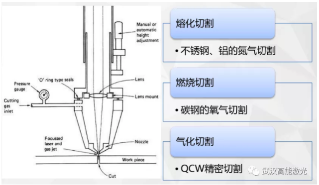 激光切割是將高功率的激光聚焦到被切割工件的表面,使其融化或燃燒,再輔以切割氣體,將熔渣吹走,切割頭在工件表面移動,形成切縫,使工件分離的過程。